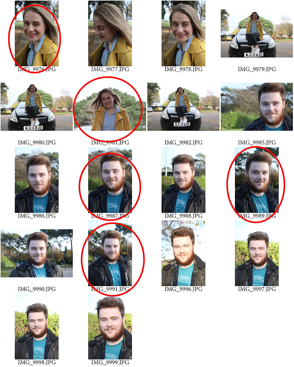 I chose to circle some of my best images that I may consider using for my photobook. Most of my photographs choosen will be taken from my final shoot because they convey the main idea of portraiture, that I wanted to develop throughout this project. However, there are some images in my other two photoshoots that I feel will work well in my photobook.