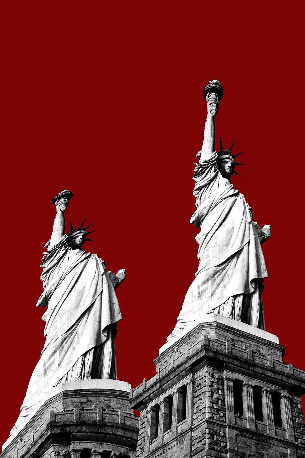 Test Image: Here I experimented with adding a background colour, duplicating the statue and warping one of the the statues.