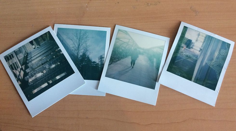 In this workshop we were able to experiment and explore different media. For example I experimented with the colour polaroid camera, which created some interesting images. I also experimented with manipulating the polaroid images by scruching it up, which created an intersting etxture underneath the image. Lastly, I printed off a film noir image and used textile medium to add colour around the image. I feel that it created a vivid focal point of the subject and conveyed a cartoon style effect.