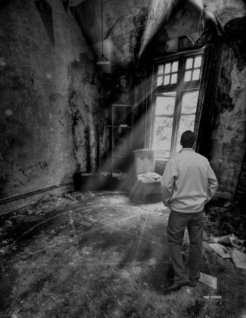 Found images on google: Here I added the person into the location, added the black and white effect to him and added some contrast and brightness to create a realistic scene.