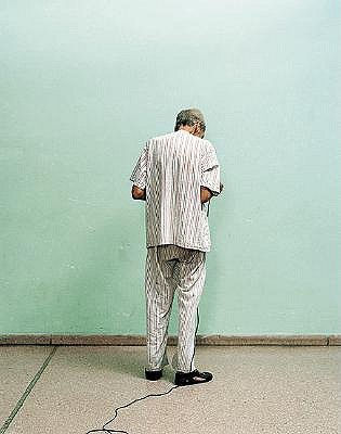 Adam Broomberg and Oliver Chanarin are South African photographers who live in London. They both started out by working for a photography magazine, where they would develop projects and share ideas. The main subjects that they include in their series photographs are groups of people e.g. Psychiatric patients. I feel like the idea of capturing patients is a tricky concept to consider but I think that Broomberg and Chanarin have captured this group of people well because they have let the patients capture their own photograph, which create a truthful atmosphere. Also I like the way that the background used creates mystery and creates an idea that they are being photographed in a hospital environment.