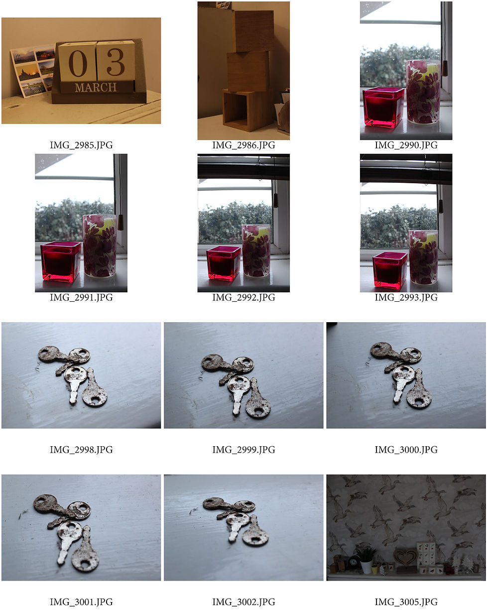 I completed a mini test shoot where I experimented with natural light and captured a variety of objects and scenery within my house. I mainly explored natural lighting becuase I know that I would like to use this with my B&B shoots, to create a vivid and clear environment. I also used some of my house light for some of the images but I felt that they were quite yellow, which created more of a dull atmosphere. I feel like the natural light works best because it creates a softer, subtle atmosphere and gives more of a personal feel. I believe that this light used links to Jackie Nickerson's work through the soft effect that the light creates. The way that the objects are placed can create a sense of personal identity and could suggest who owns these belongings. Overall, I feel that this shoot went well and helped me to decide whether I would use natural lighting for my upcoming shoots.
